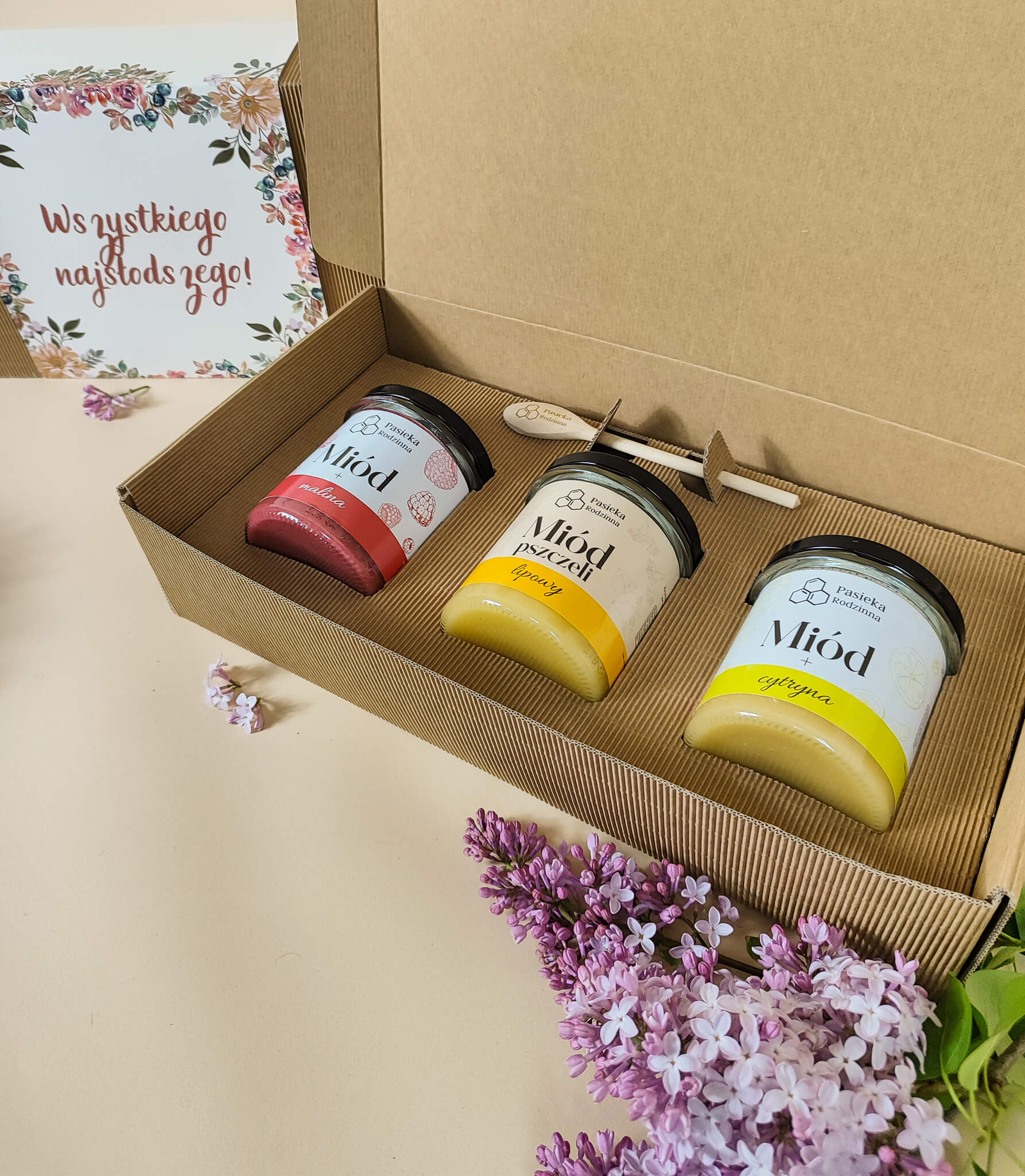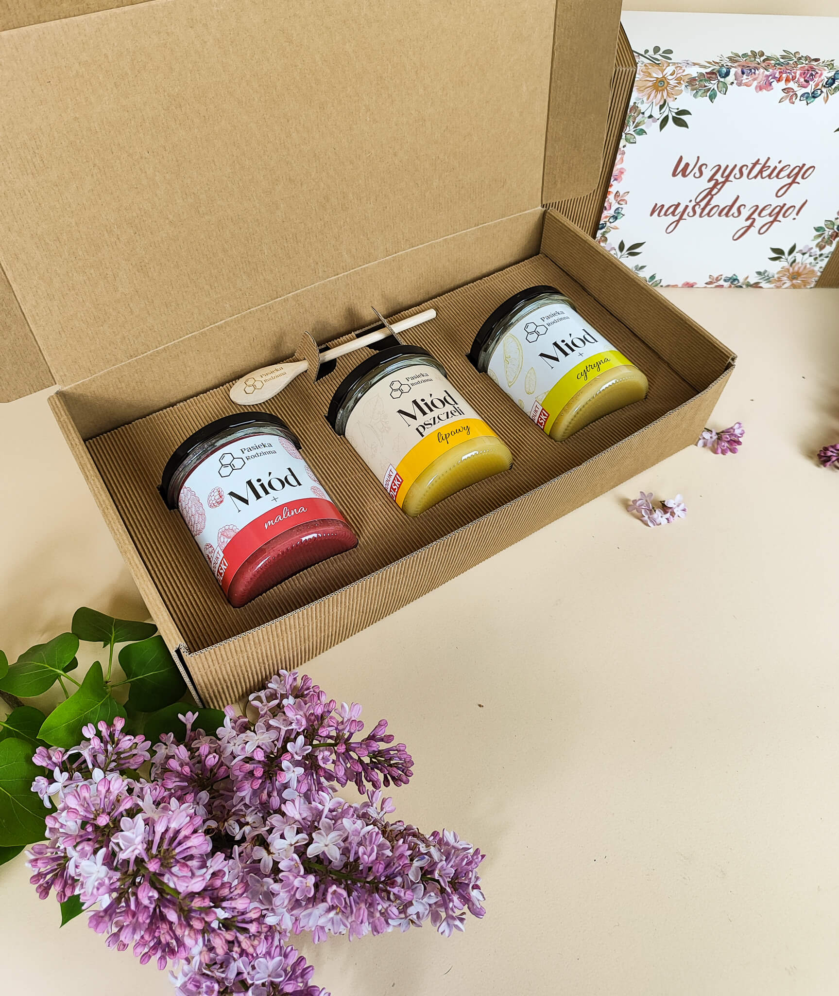 Szukasz idealnego prezentu dla bliskiej osoby? Zestaw prezentowy z miodem to doskonały wybór na każdą okazję! Elegancki kartonik z trzema wyjątkowymi miodami i drewnianą łyżeczką z pewnością zachwyci każdego miłośnika słodkich smaków.