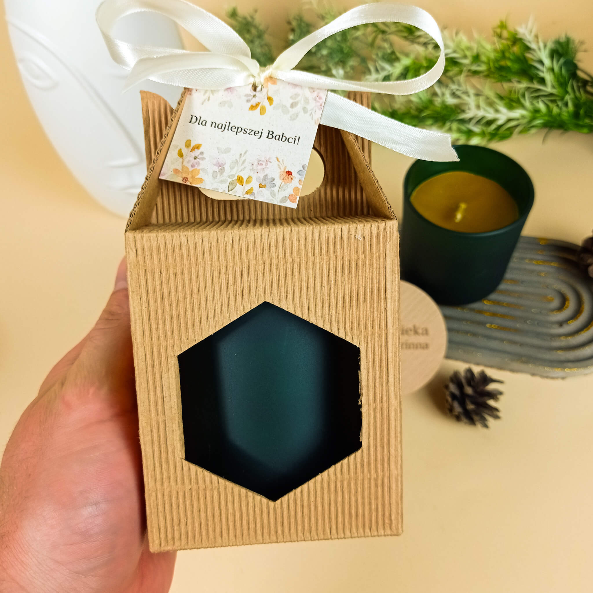 Zestaw Prezentowy z Świecą z Wosku Pszczelego na Dzień Babci i Dziadka